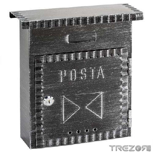 Kerítésen belüli kisméretű, kovácsoltvas jellegű levélszekrény