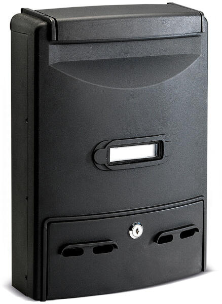 horganyzott acéllemez postaládaalumínium előlappalpórszórással színezvekerítésen, kapun kívülre szerelhetőlefelé nyíló postaláda ajtólamellás zár kettő darab kulccsalbetekintő nyílásműanyag névtartóhátsó rögzítő furatrögzítő csavarokkal áruljukkétféle színben kapható