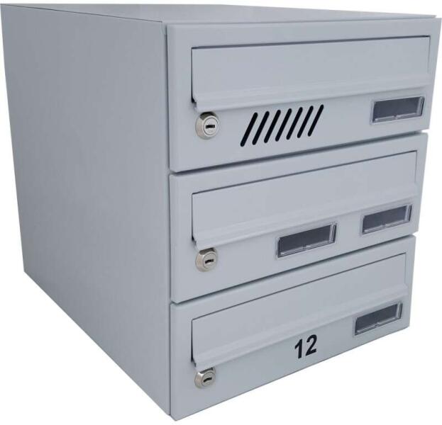M30 Moduláris Postaláda Tömb: Tökéletes megoldás több lakáshoz vagy céghez ? Ez a moduláris postaláda tömb ideális megoldás családi házakba, társasházakba vagy irodaházakba, ahol több lakás vagy cég számára szükséges a levelek biztonságos tárolása. A rugalmas moduláris kialakításnak köszönhetően 3-8 postaládát is egymásra építhet, így pontosan az Ön igényeihez igazítható. Főbb jellemzők:Moduláris rendszer: 3, 4, 5, 6, 7 vagy 8 postaládás változatokban kapható. Robusztus kivitel: Önhordó szerkezet, nincs szükség extra konzolokra. Könnyű szerelés: Falra szerelhető vagy faragható. Biztonságos: Minden postaláda különálló zárral és két kulccsal rendelkezik. Lehetőség van Master Key rendszerre is. Egyedi igények: RAL színskálából választható szín, névtáblák perforációval. Tartós anyagok: Megszakítás nélküli lemezborítás, alumínium fedél kefés tömítéssel. Praktikus méretek: A pontos méreteket lásd a termék specifikációjában. Méretek (Szélesség x Magasság x Mélység cm):Postaládák száma Méret (cm)3 30 x 33 x 374 30 x 44 x 375 30 x 55 x 376 30 x 66 x 377 30 x 77 x 378 30 x 88 x 37Választható opciók: RAL színkód szerinti festés (felár ellenében) Lakás számozás (felár ellenében) Master Key rendszer (felár ellenében) Gyártási idő: 45-55 munkanap Rendelés: A postaláda a megrendelő egyedi igényei szerint készül el.