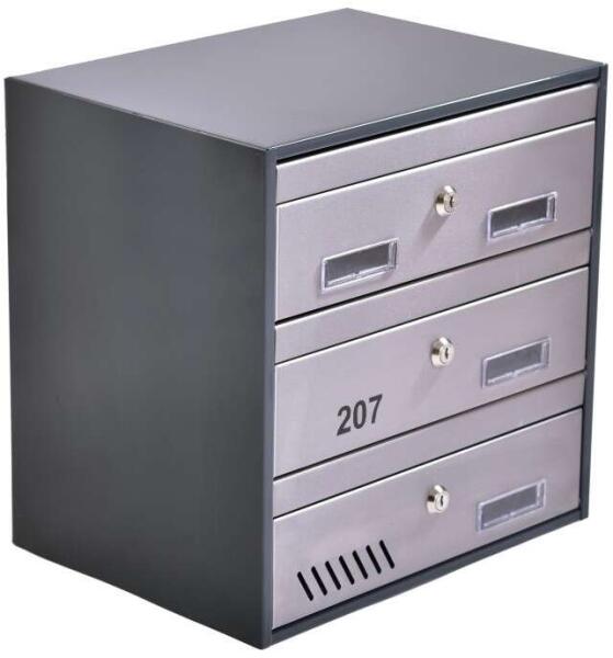 Moduláris Postaláda Tömb: Tökéletes megoldás több lakáshoz vagy céghez ? Ez a moduláris postaláda tömb ideális megoldás családi házakba, társasházakba, vagy olyan helyekre, ahol több lakás vagy cég található egy helyen. A rugalmas kialakításnak köszönhetően 3-8 rekeszből választhat, így pontosan az Ön igényeihez igazítható. A kiváló minőségű anyagokból készült postaládák hosszú élettartamot biztosítanak. Főbb jellemzők:RAL 7016 (antracit) színű postaláda test, rozsdamentes acél elemekkel. Egyedi igények szerint gyártható: Választható a rekeszek száma (3-8), és a RAL színskála bármely színe felár ellenében. Robusztus kialakítás: Önhordó szerkezet, nincs szükség extra konzolokra a szereléshez. Biztonságos: Minden postaláda 2 kulccsal rendelkezik, és kérhető MASTER KEY rendszer is felár ellenében. Praktikus: Beépített névtáblák (4 db a készletben), lefele nyíló ajtók és befele nyíló levélbedobó nyílások. Méretek:Rekeszek száma Méret (Sz x Ma x Mé) cm3 35 x 35,5 x 26,54 35 x 46,5 x 26,55 35 x 57,5 x 26,56 35 x 69,0 x 26,57 35 x 80,5 x 26,58 35 x 92,0 x 26,5Gyártási idő: 45-55 munkanap Választható opciók felár ellenében: Egyedi RAL szín Lakás szám feltüntetése a postaládán (950 Ft/postaláda) MASTER KEY rendszer (1570 Ft/zár + 2920 Ft/főkulcs) Rendelje meg most, és biztosítsa a biztonságos és elegáns levélkézbesítést!