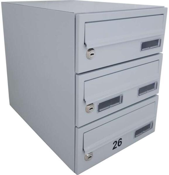 Moduláris Postaláda Tömb - 8 Postaláda, RAL 9016 Fehér Ez a moduláris postaláda tömb ideális megoldás családi házakba, társasházakba vagy irodaházakba, ahol több postaláda szükséges. 8 darab egyedi postaládát tartalmaz, melyek könnyen bővíthetők. A fehér (RAL 9016) szín elegáns és időtálló. ? Főbb jellemzők: 8 db postaláda egy tömbben RAL 9016 (fehér) szín Kompakt és helytakarékos kialakítás Önhordó szerkezet - nincs szükség extra konzolokra Minden postaláda különálló pánttal és 2 kulccsal rendelkezik Kifelé nyíló levélbedobó fedél kefés tömítéssel Bedobónyílás mérete: 23 x 3 cm Lehetőség MASTER KEY rendszerre (felár ellenében) Méret: 26 x 88 x 37 cm (Sz x Ma x Mé) Egyedi gyártás az Ön igényei szerint (45-55 munkanap) Névtáblák tartozék (8 db) Választható opciók (felár ellenében): Egyedi RAL szín Lakás számok feltüntetése a postaládákon Méretek:Postaládák száma Méret (Sz x Ma x Mé cm)3 26 x 33 x 374 26 x 44 x 375 26 x 55 x 376 26 x 66 x 377 26 x 77 x 378 26 x 88 x 37Rendelje meg most és biztosítsa a praktikus és elegáns levélkézbesítést! ✉️