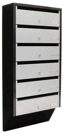Moduláris postaláda egyedileg zárható dobozokkal. Keskeny kialakítás a helytakarékosság érdekében. Elülső nyílások a postai küldemények számára. Címkék névtáblákhoz. Felfelé nyíló ajtó, minden egyes doboz hengerzárral zárható. Kiváló minőségű acélból készült, vastag. 0,8 mm. A dobozok más, azonos moduláris dobozokkal bővíthetők, így az egész lakóépület számára készletet alkotnak. Előfúrt lyukak a hátoldalon a falhoz való rögzítéshez.