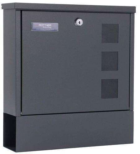 Postaláda áttetsző ablakokkal a tartalom gyors áttekintéséhez. Felső bedobónyílással A4-es méretig, külön újságosrekesszel. Névtáblatartóval. Hengerzárral zárható elülső ajtóval. Időjárásálló, így beltérben és kültéren egyaránt elhelyezhető. Hátoldali furatokkal a falra történő rögzítéshez.