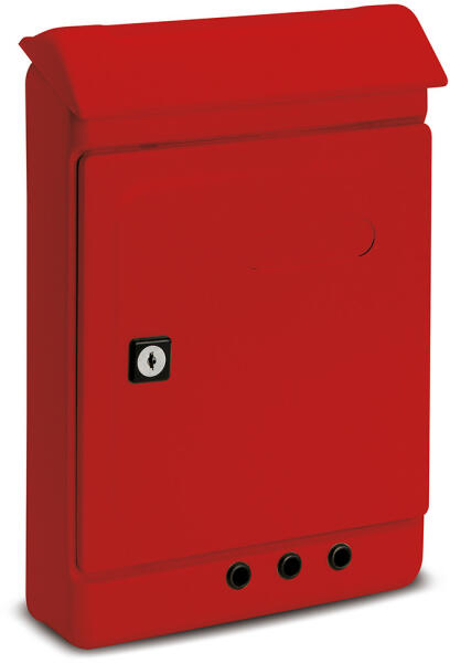 horganyzott acéllemez postaláda pórszórással színezve kerítésen, kapun kívülre szerelhető oldalra nyíló postaláda ajtó lamellás zár kettő darab kulccsal betekintő nyílás műanyag névtartó hátsó rögzítő furat rögzítő csavarokkal áruljuk 3 színben kapható