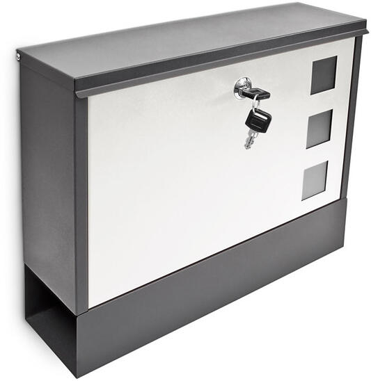 Teo Fém PostaládaZárható (2 kulcs jár hozzá)   Nagy zárható, postaláda ajtó. A4 méretű levél is beledobható. Postaláda mérete: 36 x 30 x 10 cm (Szé x Ma x Mé)Postaládaajtó mérete:  33,5 x 21,5 cm ( Szé x Ma)Bedobónyílás mérete: 30 x 3 cm (Szé x Mé)Anyaga: Porszórt fém