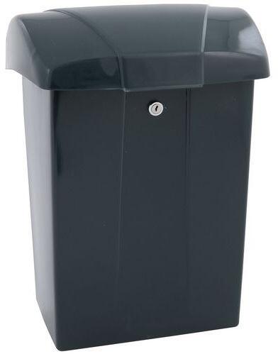 Falra vagy oszlopra rögzíthető műanyag postaláda. Elöl zár.